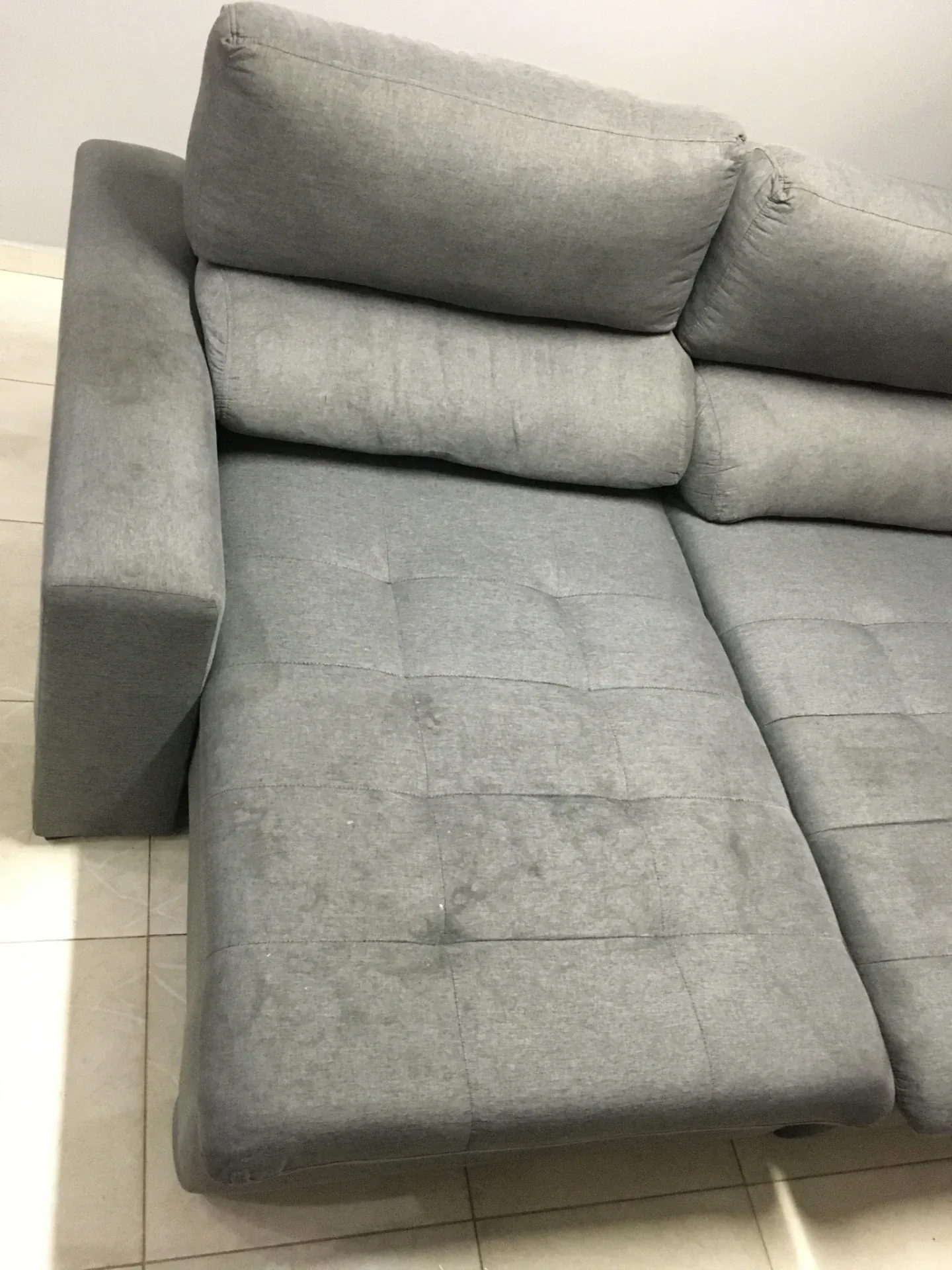 Depois de seco, o sofá pode ser usado por crianças e pets com tranquilidade. Sem resíduo, sem cheiro forte.