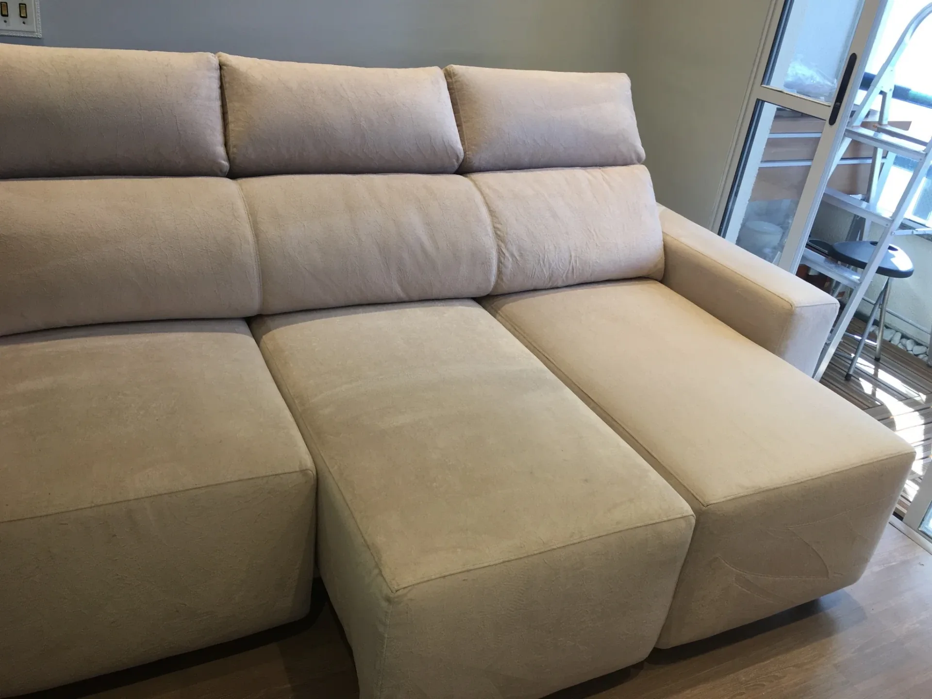 Depois de seco, o sofá pode ser usado por crianças e pets com tranquilidade. Sem resíduo, sem cheiro forte.